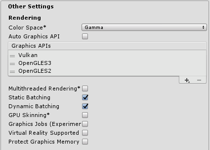 Unity에서는 Unity가 애플리케이션을 빌드하는 데 사용할 수있는 그래픽 API 목록에 Vulkan을 추가하기만 하면됩니다.